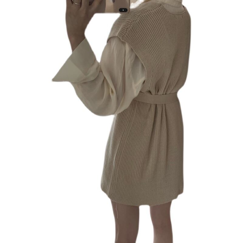 日本と韓国スタイルのVネックストラップ付きニットスカート韓国秋用ルーズで薄いウールベストレイヤードベストドレス