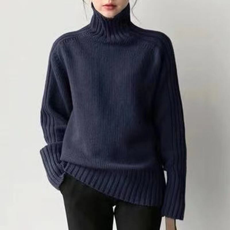 タートルネックセーター女性の冬オールマッチレトロルーズプルオーバー怠惰な気質シンプルな厚みのある底ニットウェア