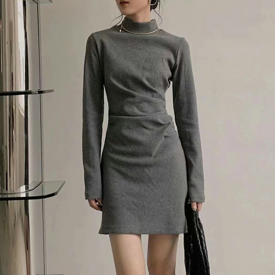 用途の広いデザインのプリーツハーフハイネックドレス秋冬新スタイルボトミングコートシングルウェアウエストパックヒップスカート