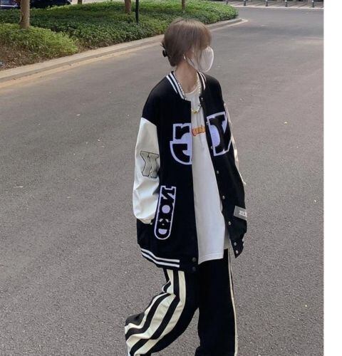 アメリカンレトロビンテージ野球ユニフォーム女子学生 2023年春秋ルーズハイストリートヒップホップジャケットジャケットトレンディ