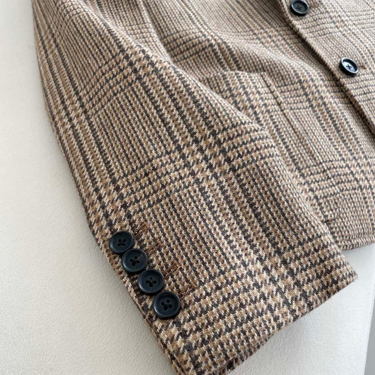 テイラード レディース コーヒー カラー 多用途 フェイク ウール レディース ショート スーツ プリンス オブ ウェールズ チェック ジャケット