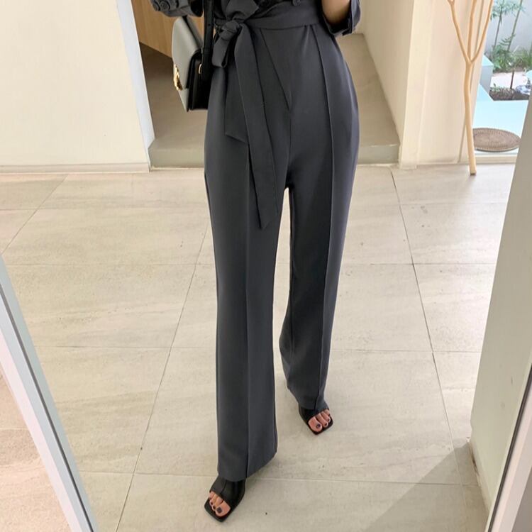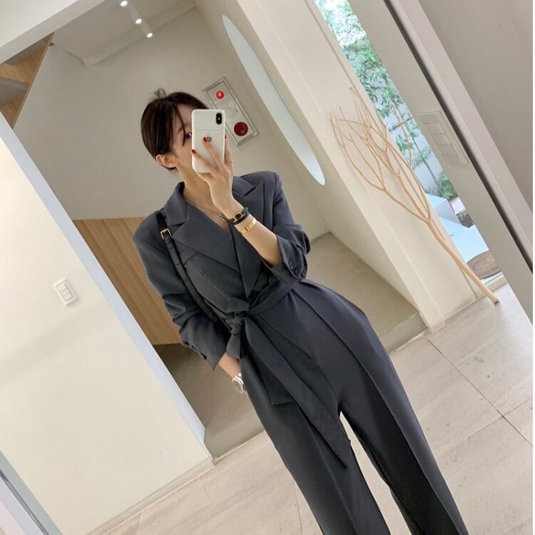 韓国東大門スーツジャンプスーツ女性のラペル気質レースアップウエスト痩身ドレープカジュアルスーツジャンプスーツ