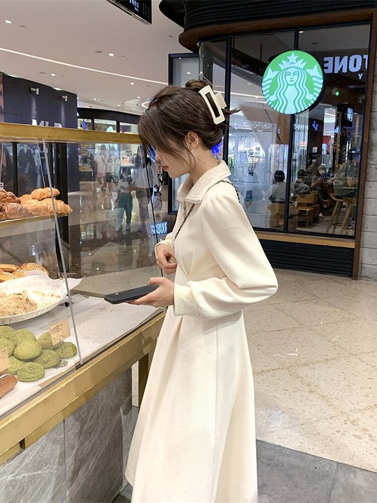 お気に入りに追加 2023年秋冬女性用デザインハーフジッパーフリースワッフル長袖ドレスニュースタイルウエストミドル丈スカート