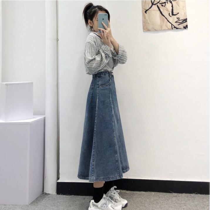 アラバイレトロデザインパッチワークデニムスカート女性用春秋ハイウエストミドル丈 Aライン傘スカート夏