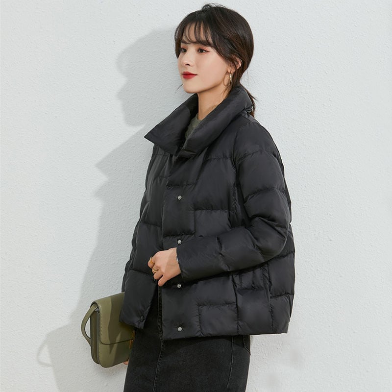 ダックの羽毛ジャケットの女性の短いタイプの冬の服の新型の軽薄で小さい人のゆったりしているレジャーの保温のコートの階段のタイプ